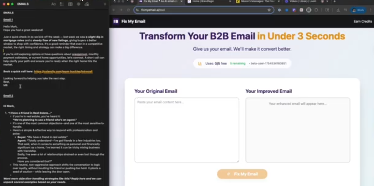 FixMyEmail is a conversion copy tool that rewrites your emails using behavioral psychology, buyer decision patterns, and proven sales frameworks so more people take action.